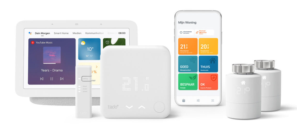 - tado° Slimme Bedrade Thermostaat Starter Kit V3+ + 2x Radiatorknoppen + Gratis Google Nest Hub (Gen. 2)