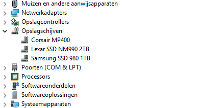In onze tests met Windows 11 25H2 blijkt de nieuwe driver na een herstart daadwerkelijk actief te zijn. Dat is te verifiëren via Apparaatbeheer: na de omschakeling wordt de ssd niet langer onder Schijfstations weergegeven, maar verschijnt deze in de categorie Opslagschijven.