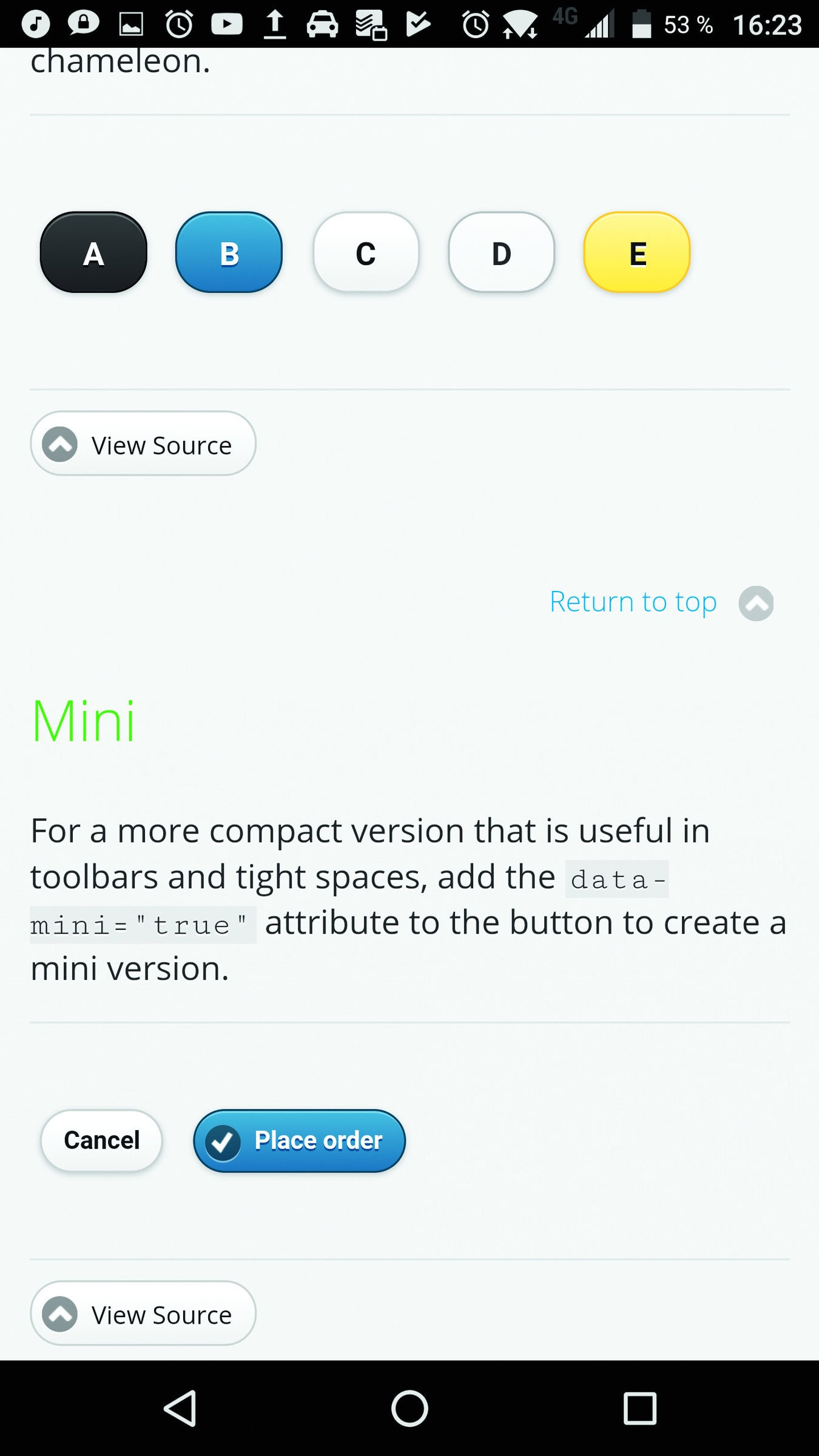 De markante blauwe en groene knoppen van jQuery Mobile zijn in recentere versies vervangen door neutralere widgets.