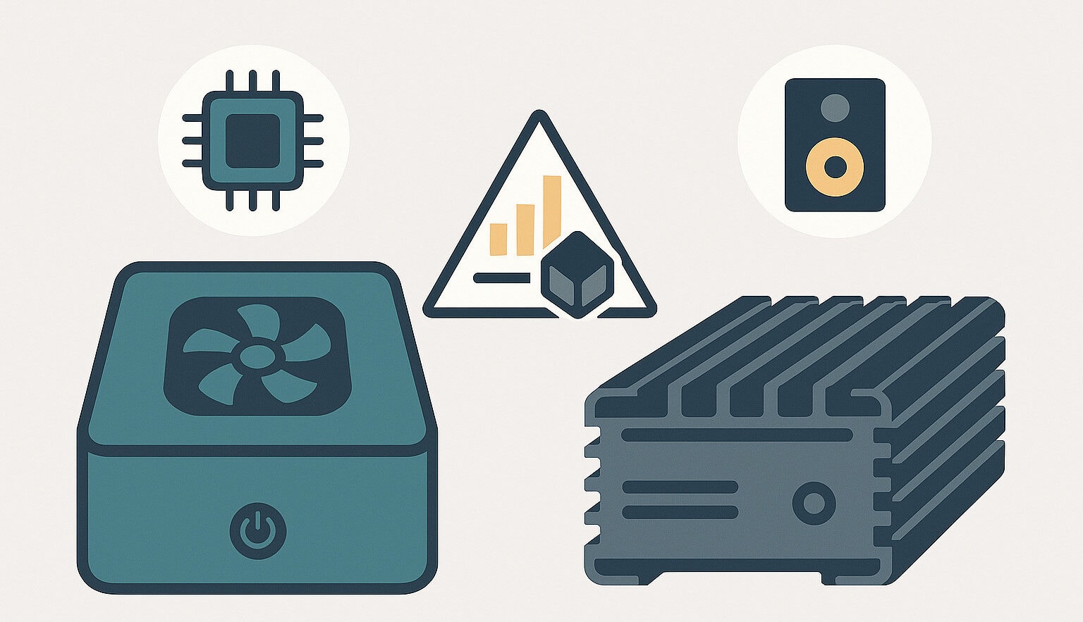 Bij het ontwerpen van een mini-pc speelt een klassiek compromis: prestaties, geluidsniveau en formaat vormen een driehoek waarvan zelden alle zijden tegelijk te optimaliseren zijn. In de praktijk is dat vaak geen probleem: waar veel rekenkracht nodig is, hoeft absolute stilte meestal niet — en omgekeerd. Alleen in toepassingen waar beide eisen samenkomen, zoals bij audio-opnamen of mastering, kan gespecialiseerde hardware nodig zijn.