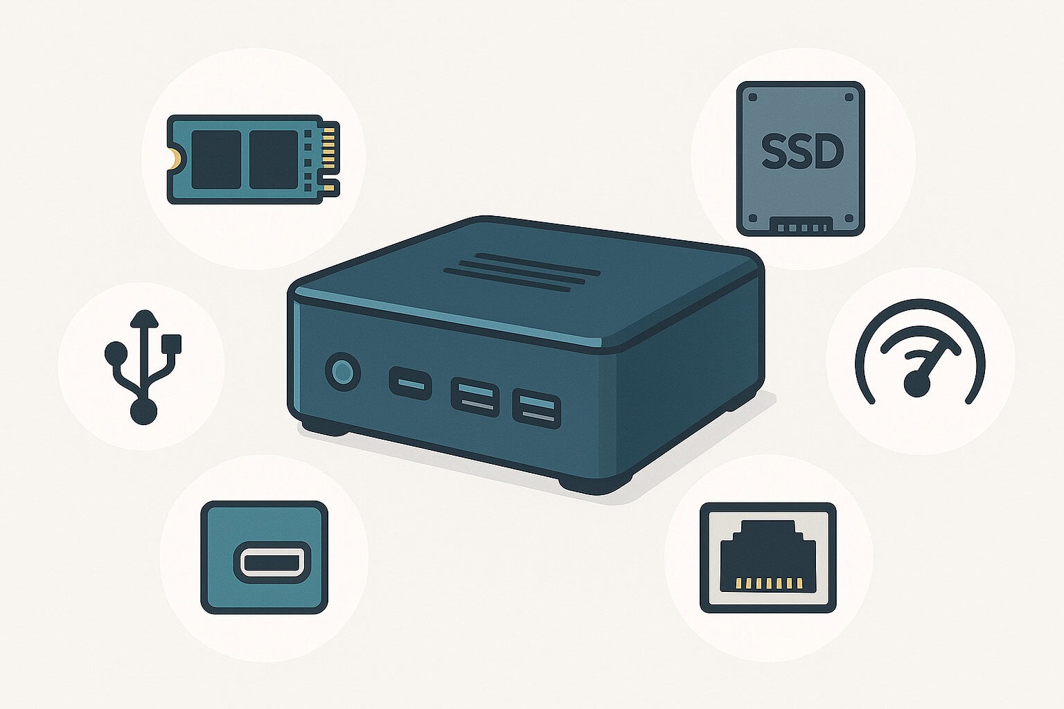Bij de keuze voor een mini-pc zijn opslagtype en overdrachtssnelheid van doorslaggevend belang. Vrijwel alle modellen maken gebruik van solid-state opslag, waarbij SATA- en NVMe-ssd’s het meest voorkomen. Voor kantoorwerk volstaat doorgaans een SATA-ssd, maar bij toepassingen als videobewerking in hoge resolutie is de hogere doorvoersnelheid van een NVMe-ssd essentieel.