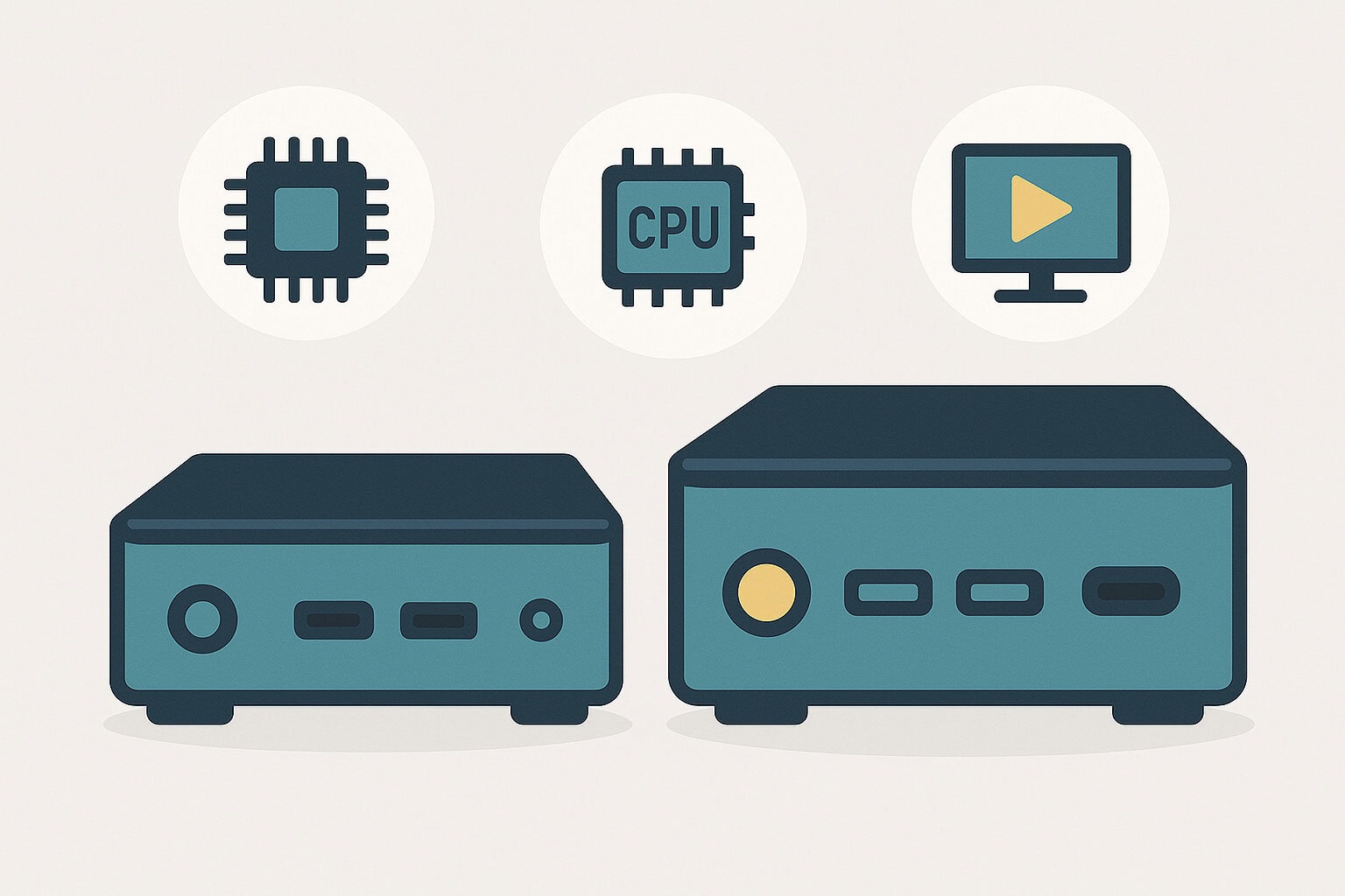De meest compacte mini-pc’s maken gebruik van moderne Celeron-, Pentium- of Ryzen Embedded-cpu’s. Voor basistaken zoals tekstverwerking en webbrowsen bieden ze voldoende rekenkracht. Afhankelijk van de geïntegreerde gpu kunnen ze ook prima functioneren als stille streamingclients, mits het thermische ontwerp het geluidsniveau binnen de perken houdt.