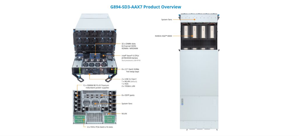 De G894-SD3-AAX7 is ontworpen voor opkomende cloudserviceproviders zoals Neocloud, maar voldoet ook aan de innovatiebehoeften van meerdere sectoren. Met de kracht van NVIDIA HGX™ B300 kunnen bedrijven generatieve AI, redeneringsdiensten en HPC-workloads versnellen, wat baanbrekende ontwikkelingen mogelijk maakt in de gezondheidszorg, productie, financiën en onderzoek.