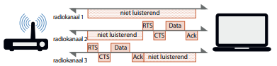 Met de laagste hardware-eisen bevindt de MLSR-modus (Multi-Link Single-Radio) zich helemaal aan het einde van het spectrum. Deze modus is bedoeld voor clients met slechts één transceiver en daarom niet geschikt voor communicatie via meerdere radiozenders. Met MLSR schakelt de client echter met een korte vertraging tussen verschillende radiobanden en meldt zich op meerdere kanalen aan bij het basisstation. Vervolgens wacht hij op inkomende data op slechts één daarvan (EMLSR wacht op meerdere), zie ‘Multi-Link Single-Radio’. Het basisstation start een transmissie met een weksignaal, de client schakelt over naar het toegewezen kanaal, ontvangt de data en luistert weer op één kanaal.