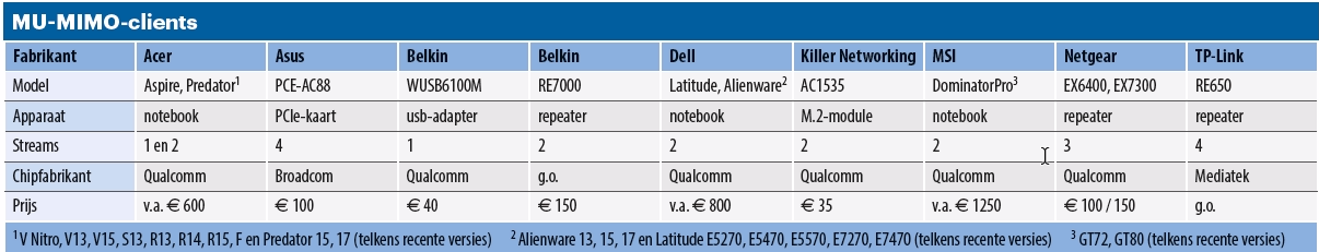 Er zijn al enkele notebooks met MU-MIMO verkrijgbaar, waaronder modellen uit Acers Aspire-serie en de Latitudes van Dell. In de tabel hieronder staat wat meer informatie over de verschillende apparaten.