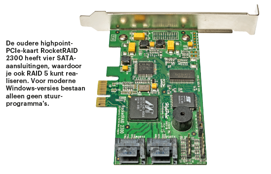 Sinds een paar jaar is RAID instellen ook mogelijk op een desktop-pc met meerdere schijven. Zowel de SATA-controllers van moderne moederborden als recente besturingssystemen bieden ondersteuning voor RAID. Je hebt daar geen speciale RAID-adapters meer voor nodig. De desktop-cpu’s voeren de berekeningen uit – voor de performance maakt dat bijna niks uit.