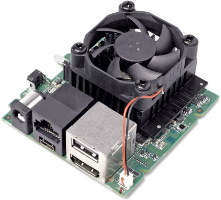 De console zelf is niet meer dan een kleine kubus van zilverkleurig plastic. Aan de onderkant zitten de ventilatiesleuven voor de ventilatoren. Het geluid van de ventilatoren is met 0,8 sone vergelijkbaar met een PS3 in rust. Aan de bovenkant zit de powerknop, aan de achterkant de aansluitingen voor HDMI, USB en ethernet. De Ouya kan ook draadloos via IEEE 802.11 b/g/n) met het internet verbonden worden. De externe adapter is een Amerikaanse variant, die je het best kunt omwisselen door een Europese van 12 volt en 1,5 ampère. Als je de vier inbusschroeven van de behuizing losdraait, kun je de kleine printplaat (7 cm lang) er zonder problemen uithalen. De Ouya heeft op de printplaat een Tegra 3-System-on-Chip met een vastgesoldeerde ARM Cortex A9. Daarnaast beschikt hij over 1 GB RAM en 8 GB flashgeheugen, dat je via USB 2.0 kunt uitbreiden. Met deze uitrusting kan de Ouya qua rekenprestaties meekomen met smartphones van rond de 300 euro.