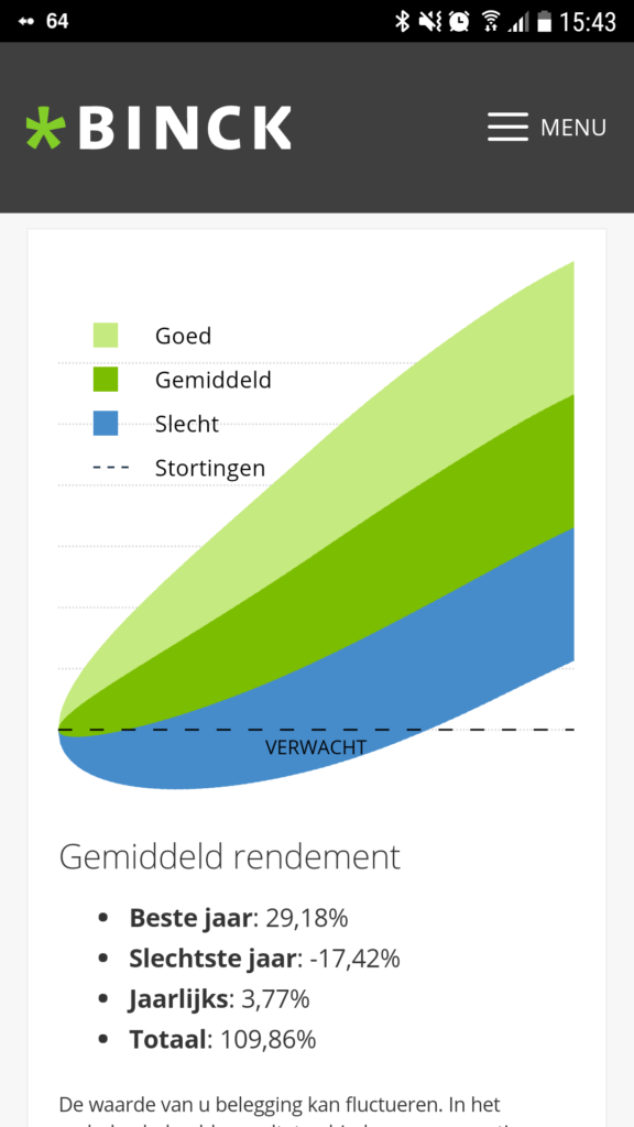 Het jaar 2016 was een goed jaar voor beleggers die veel risico’s durfden te nemen. En dus veel aandelen-ETF’s in hun portfolio hadden. In Duitsland, waar robo-adviseurs al meer gemeengoed zijn, kwam de gemiddelde winst bij robo-adviseurs op ruim 11 procent. Bij gemiddeld of laag risico was dat nog steeds 8, respectievelijk 4 procent. Binck Forward haalde in 2016 een rendement tussen de 9 (offensief/risicovol) en 3 procent (defensief/weinig risico). Robo-adviseurs zijn echter nog te kort op de markt om langetermijnuitspraken te doen.
