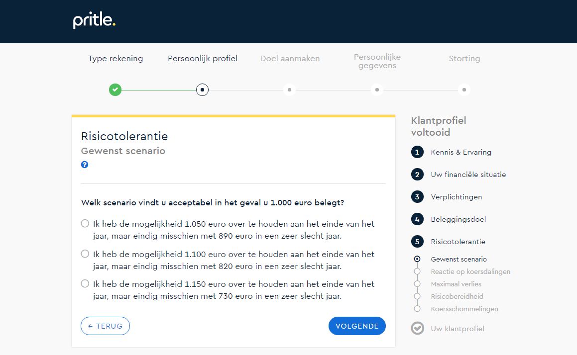 Het eerste contact met een robo-adviseur vindt doorgaans online plaats. Daarbij krijg je eerst vragen over je ervaring met financiële producten, je financiële situatie en doelen en hoeveel risico je acceptabel vindt. Achter dit zogeheten onboardingproces gaat geen hogere wiskunde schuil.