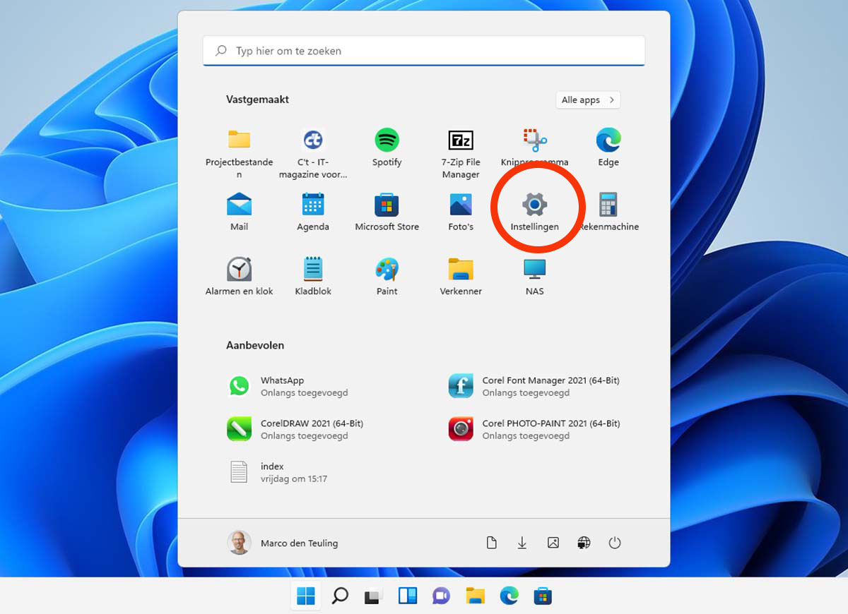 Het startmenu in Windows 11 is de plek waar je geïnstalleerde programma’s start of doorklikt naar andere Windows-onderdelen of bestanden.