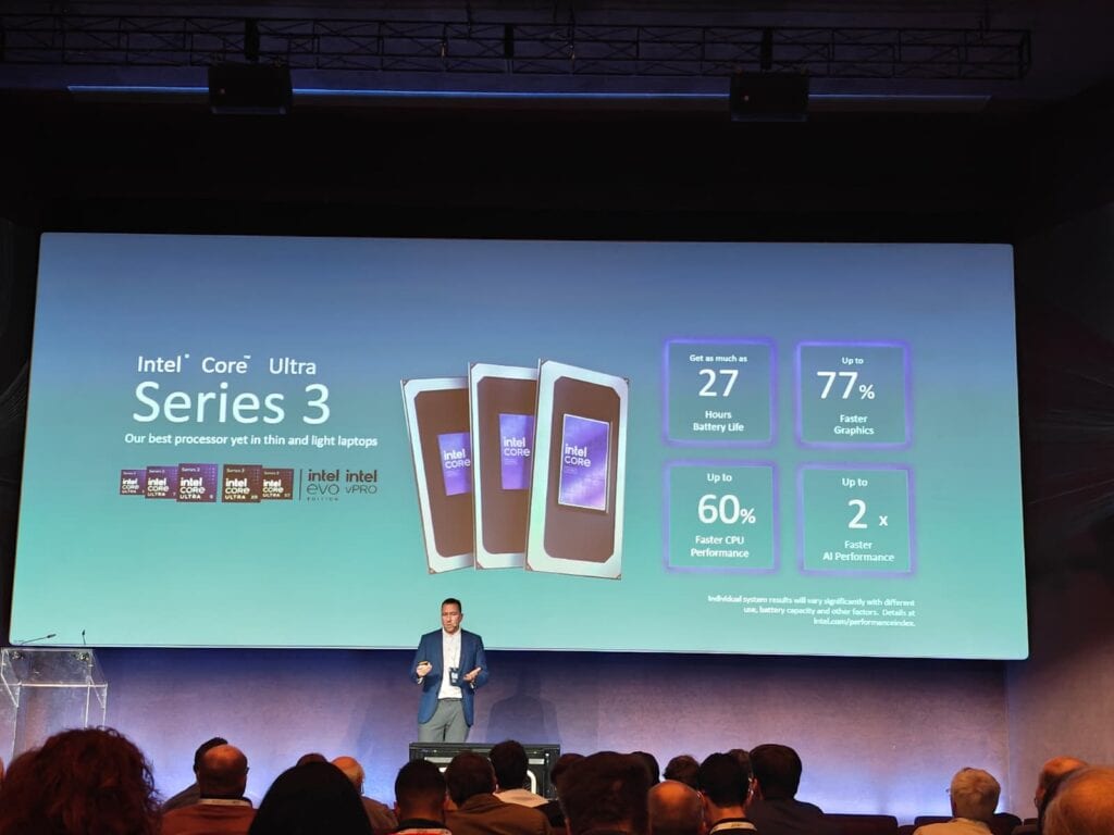 Centraal in de nieuwe laptops staat de integratie van AI-functionaliteit op apparaatniveau. De Core Ultra Series 3-processors combineren cpu-, gpu- en NPU-componenten, waarbij de NPU bedoeld is voor energiezuinige verwerking van AI-taken. In combinatie met Windows 11 Copilot+ kunnen bepaalde AI-functies daardoor lokaal draaien.