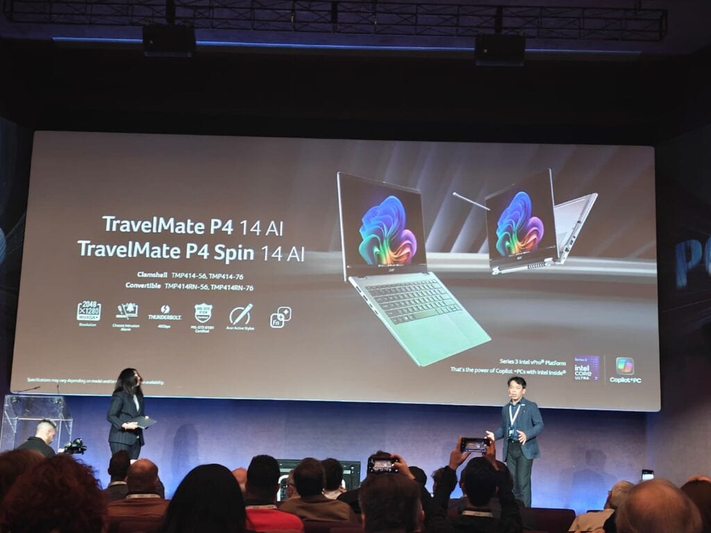 De nieuwe serie bestaat uit twee productlijnen met elk een eigen positionering. De TravelMate P4-modellen richten zich op mobiele professionals die een compact en relatief licht systeem nodig hebben. De TravelMate P4 14 AI heeft een traditioneel clamshell-ontwerp, terwijl de TravelMate P4 Spin 14 AI is uitgerust met een 360-gradenscharnier waardoor het apparaat ook als tablet of in presentatiemodus kan worden gebruikt. Beide modellen hebben een aluminium behuizing en zijn bedoeld voor gebruikers die veel onderweg werken.
