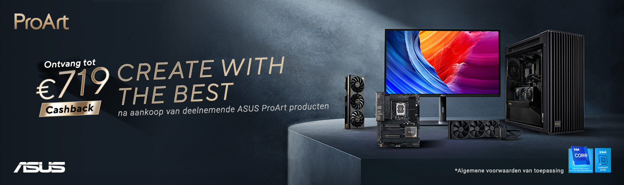 ASUS heeft tot en met 21 mei een aantal leuke promotie-acties met mooie cashback voor ProArt pc-componenten. De promotie loopt tot en met 21 mei en inwisselen kan van 23 april tot en met 4 juni. Maar waar staat ProArt eigenlijk voor en wat maakt de producten bijzonder?