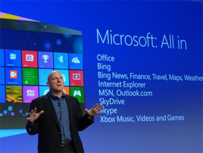 Microsoft had de tablettrend vroegtijdig onderkend, maar wist die niet vertalen naar een succesvol marketingconcept. Daardoor ging Apple tien jaar met die eer aan de haal en scoort nu succes na succes. Volgens Ballmer is het soms moeilijk om hard- en software-zaken goed te regelen, als je ze niet allebei zelf produceert. Als services- en hardwarebedrijf moet dat in de toekomst duidelijk anders worden. Diensten als Office 365 moeten met de juiste hardware aangevuld worden, zoals de nieuwe Surface tablet-pc met Windows RT.