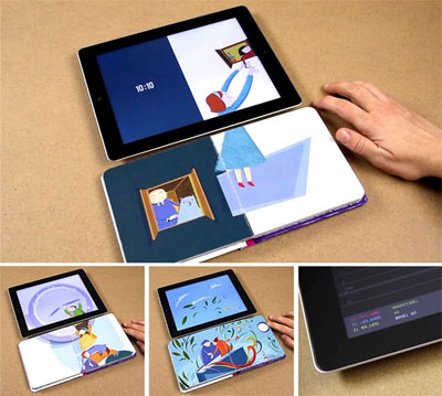 Bridging Book is een nieuw interessant project om de digitale en de analoge wereld bij elkaar te brengen. Het project bestaat uit een papieren kinderboek en een bijbehorende tablet-app. Door het boek tegen de tablet aan te leggen, kan het papieren boek de tablet-app aansturen, zodat je in feite een combinatie krijgt van een papieren boek en een interactief elektronisch boek.