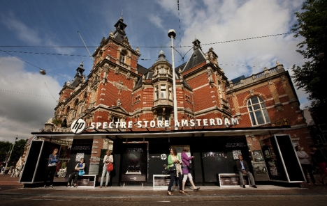 In één nacht is de drukke tramhalte op het Leidseplein omgetoverd in een heuse HP Spectre Store. HP verkoopt daar maar één product, het Spectre ultrabook. De ultrabooks zijn te zien in vitrines aan weerszijden van de tramhalte.