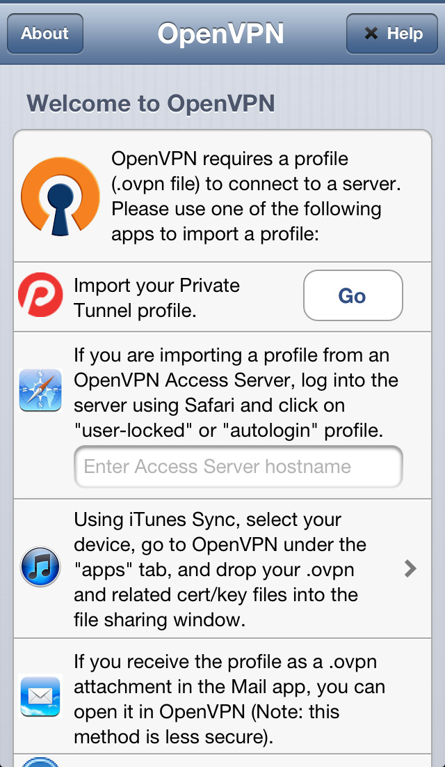 In de Apple App Store is sinds vandaag de officiële OpenVPN-client OpenVPN Connect voor iOS beschikbaar. Deze gratis app voor iPhone en iPad is volledig opnieuw opgebouwd en steunt niet op het werk van de OpenVPN-community, aldus OpenVPN-ontwikkelaar Gert Döring op Google+. Dat komt door de licentiebepalingen van de App Store, die niet met de opensourcelicentie GPL in overeenstemming te brengen zijn. De iOS-app werkt zoals gewoonlijk met het opensource OpenVPN samen. Vanaf versie 2.3.x ondersteunt deze serversoftware iOS-devices ook met IPv6.