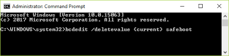 bcdedit /deletevalue {current} safeboot