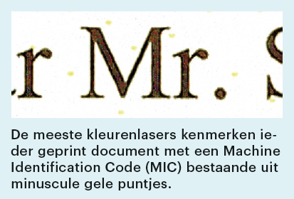 Het is trouwens ook mogelijk dat een document iets prijsgeeft over de gebruikte printer. Net zoals bij oude detectivefilms fouten in bepaalde letters kunnen leiden tot de door de dader gebruikte typemachine, kun je aan de hand van geprinte documenten conclusies trekken over de gebruikte printer.