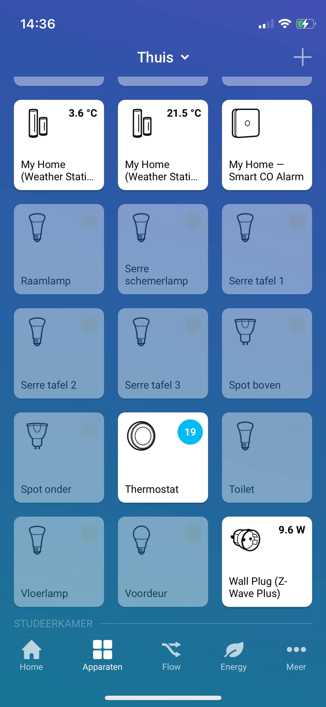 Met de Flows kun je automatismen aanmaken en bijvoorbeeld het actief worden van een Fibaro 868MHz-bewegingsmelder met Z-Wave laten opvolgen door het aangaan van een Ikea Zigbee-lamp. Klik op het Flows-tabblad en op ‘Nieuw kaartje’. Als gebeurtenis kies je de API en de bewegingssensor en de optie ‘de bewegingsmelder gaat aan’. Met En kun je eventueel een extra voorwaarde toevoegen. Bij Dan maak je een kaartje aan met wat er vervolgens moet gebeuren. Daar selecteer je de lamp of wat je dan ook wilt aansturen bij beweging. Op het Energy-tabblad krijg je voor zover beschikbaar informatie over het energieverbruik van de afzonderlijke onderdelen. Van daaruit kun je de betreffende apparaten ook makkelijk rechtstreeks aan of uit zetten.