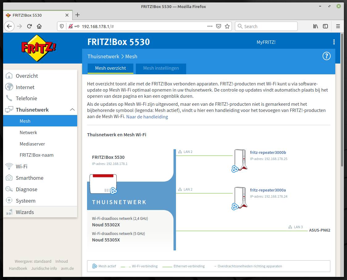 Een ander voordeel is het centraal beheer van het meshsysteem. Je krijg in de router een overzicht te zien van alle netwerkonderdelen en wat daarop aangesloten is, waarbij je die vanuit dat overzicht rechtstreeks kunt updaten als dat aan de orde is. Alle wijzigingen aan de netwerkinstellingen die je bij de router doet, worden automatisch overgenomen door de mesh-apparaten. Daarmee is een stabiel meshnetwerk te installeren, waar de router zelf ook onderdeel van is. Dat heeft voordelen ten opzichte van een los wifi-meshsysteem, dat je met een andere webinterface of een app weer apart moet beheren.