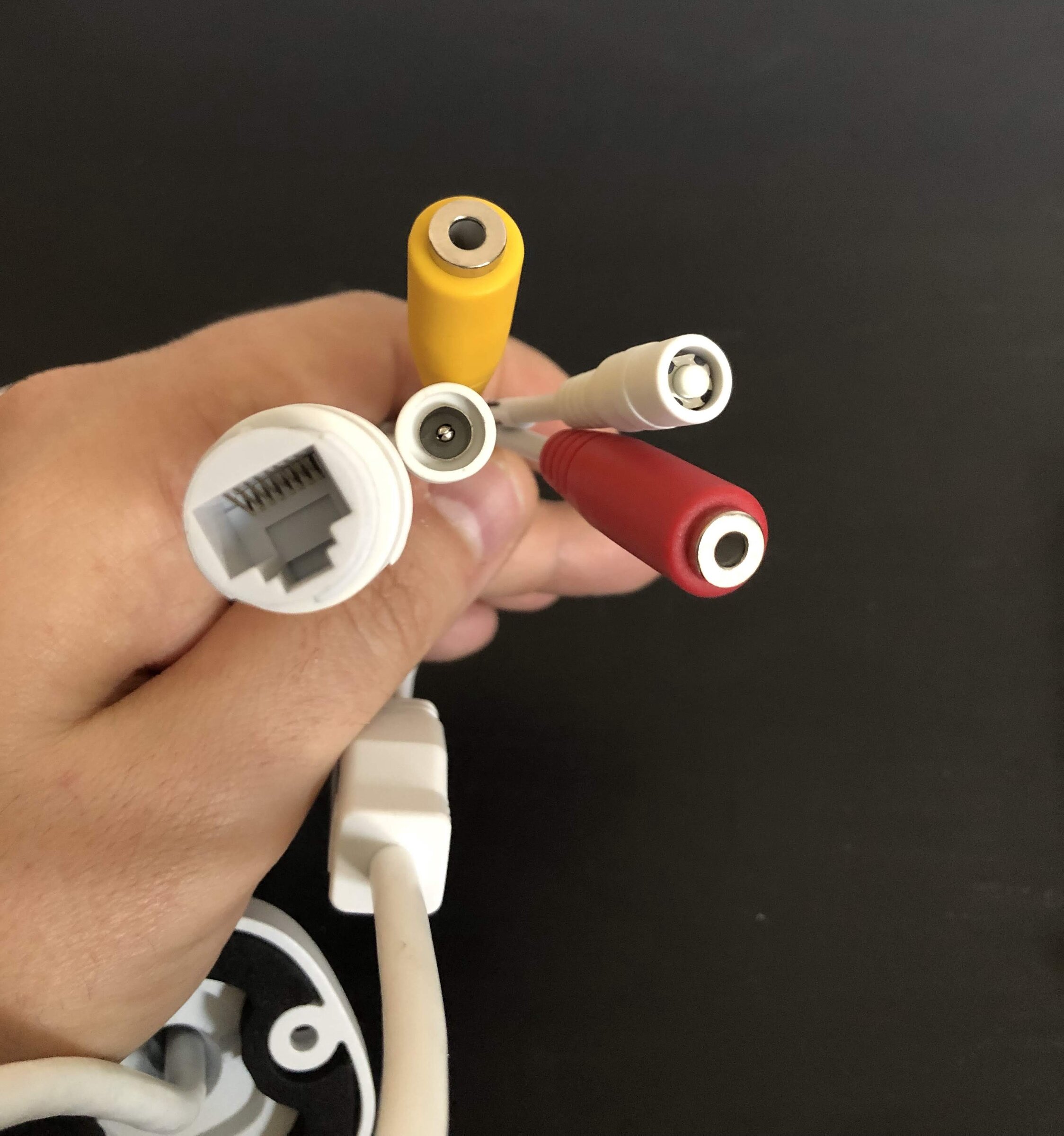 De stekkers met aansluitingen voor de camera: je moet zelf zorgen voor een microfoon en speaker als je tweewegaudio wilt gebruiken.We willen de vijf testpanelleden die hun ervaringen met de Foscam-camera hebben vastgelegd in woord en beeld hartelijk bedanken, te weten Maarten De Bont, ­Edwin Dijkstra, Erik Kemper, Joram van der ­Velden en Ron Vermeulen. We zijn al bezig met de volgende test. Onze voorraad aan testpanelleden is inmiddels voldoende groot om een behoorlijk aantal tests vooruit te kunnen. We vinden het bijzonder leuk om de enthousiaste ­­reviews van onze testers te lezen.