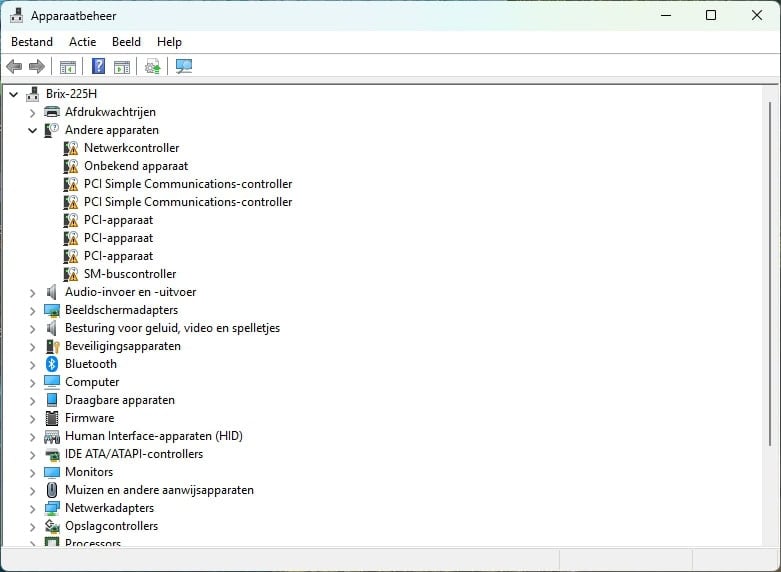 Daarna gaat het updaten en verder configureren vlekkeloos. Na het aanmelden bij Windows toont het Apparaatbeheer een aantal niet geconfigureerde apparaten. Na het afwerken van de setup-programma’s in de stuurprogramma-zipbestanden bleef er een PCI Simple Communications-controller over. In de praktijk blijkt het veel handiger via intel.com de Intel Driver & Support Assistant te installeren en laten draaien, dan worden alle ontbrekende componenten herkend en ingesteld.