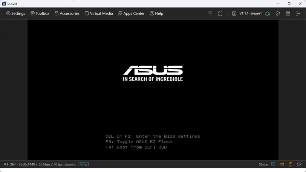 Als je de te beheren pc vervolgens opstart, zie je in het venster het opstartscherm en het bootproces van die pc. Je kunt dus ook gewoon het BIOS in om wat te veranderen aan de instellingen als dat nodig mocht zijn. Enig nadeel daarbij: je moet wel bij de remote pc kunnen om hem aan te zetten, maar daarover zo meer.