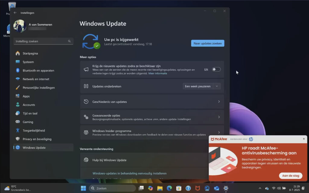 De laptop toont regelmatig extra opties vanuit HP, wat in de praktijk als storend kan worden ervaren, naast bloatware zoals meldingen van McAfee. Daarnaast is er een bèta van de HP AI Companion-app beschikbaar, waarvoor de hardware geschikt is dankzij de NPU met 47 TOPS.