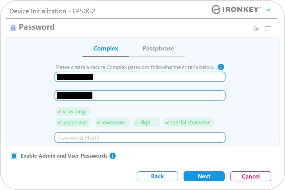 WachtwoordmodusComplexe wachtwoorden en wachtwoordzinnen