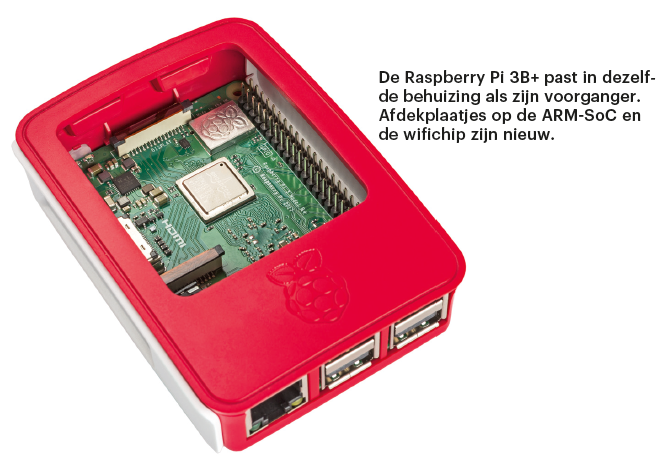 Die is echter – ondanks wat speculaties over de BCM7268 – nog niet in zicht. Dus komt de Foundation met wat realistisch gezien te verwachten was: een Raspberry Pi 3B+ met net iets meer aan boord dan zijn voorganger de 3B. De opsteekmodules en behuizingen die je al hebt kun je gewoon hergebruiken. Na een besturingssysteem- en kernelupdate (4.14), die op het moment dat je dit leest al uit zijn, werkt dan waarschijnlijk ook alle aanwezige software op de Raspberry Pi 3B+. De eerste tests geven wel wat vertrouwen op dat gebied.