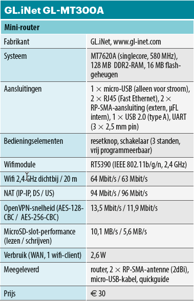 De fabrikant heeft een Nederlandse webshop die om de zoveel tijd een voorraad binnen lijkt te krijgen. De mini-router is ook bij Amazon te koop en anders kun je hem altijd nog via de wereldwijde shop van GL.iNet vanuit China laten komen. Naast de router zitten in de verpakking twee RP-SMA-antennes, een micro-usb-kabel voor de stroom en een briefje met het standaard wifi-wachtwoord en het ip-adres van het apparaat.