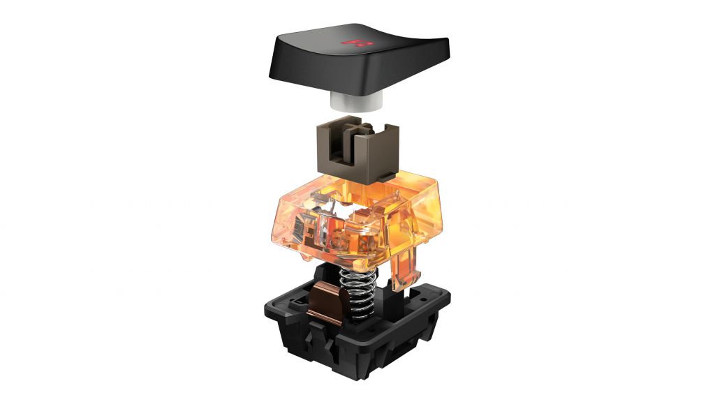 De eigen Titan-switches zijn te vergelijken met Cherry MX Browns. De behuizing van de switches is extra stevig en transparant. Hierdoor straalt het licht naar alle kanten uit over de geborstelde zilverkleurige metalen backplate.
