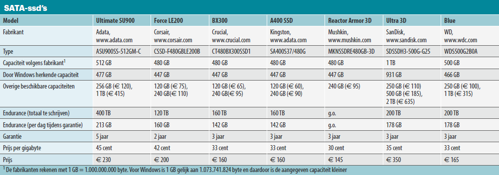 Alle ssd’s zijn prima om een systeem met harde schijf vlotter te maken of de computer te upgraden. Als je het liefst zo weinig mogelijk geld wilt uitgeven, moet je voor de Reactor Armor 3D gaan. De schrijfsnelheid van deze ssd is alleen niet bepaald subliem. Aan de andere kant heb je de BX300: erg snel, niet veel duurder maar wel lastiger te krijgen (via de oosterburen lukt het wat beter).