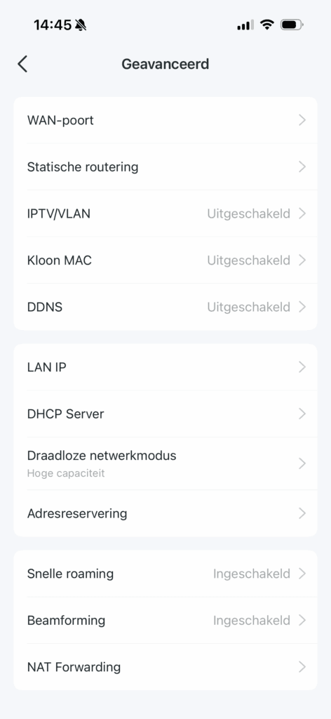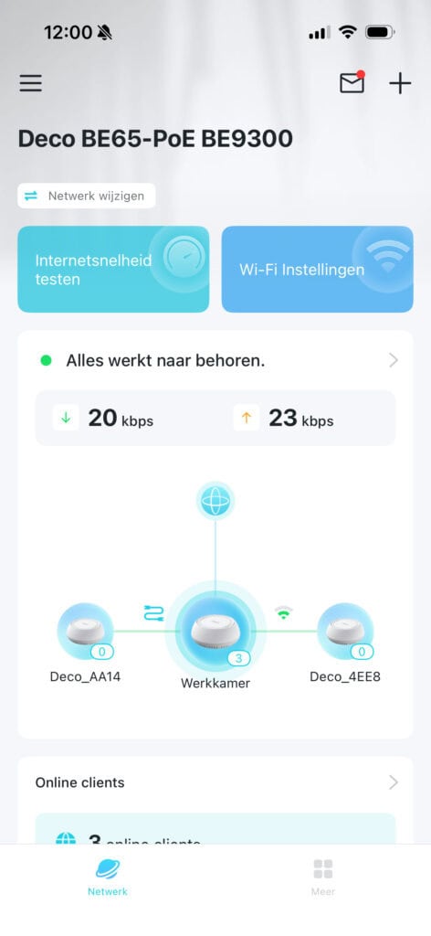 De meshset staat standaard ingesteld als wifirouter. Je kunt clients blokkeren of juist toestaan en (IoT-)apparaten isoleren, waardoor die wel toegang tot internet hebben, maar lokaal niet onderling kunnen communiceren. Zo kun je bijvoorbeeld camerabeelden lokaal houden of met een thuismodus tijdelijk blokkeren. Ook ouderlijk toezicht ontbreekt niet. Verder kun je natuurlijk poorten doorsturen en andere basisfuncties van een router instellen.