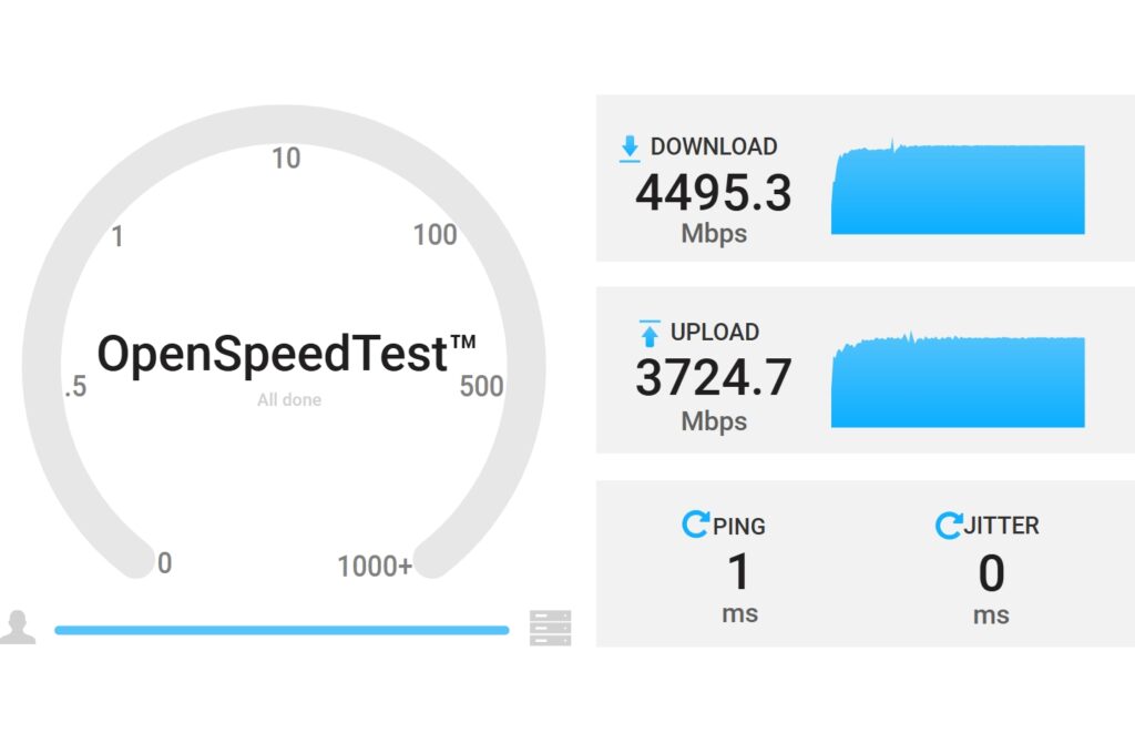 Met OpenSpeedTest haalden we een NAT-doorvoer van SFP1 (LAN) naar SFP0 (WAN) met twee TL-SM5310-T 10Gbit/s-SFP+-modules van slechts 4,5 Gbit/s. Dat verbeterde niet toen we één van de 2,5Gbit/s-poorten als WAN instelden en de SFP+-poorten binnen het LAN testten. In een andere switch haalden dezelfde modules 9,8 Gbit/s, dus daar lag het niet aan. De oorzaak bleef onduidelijk.