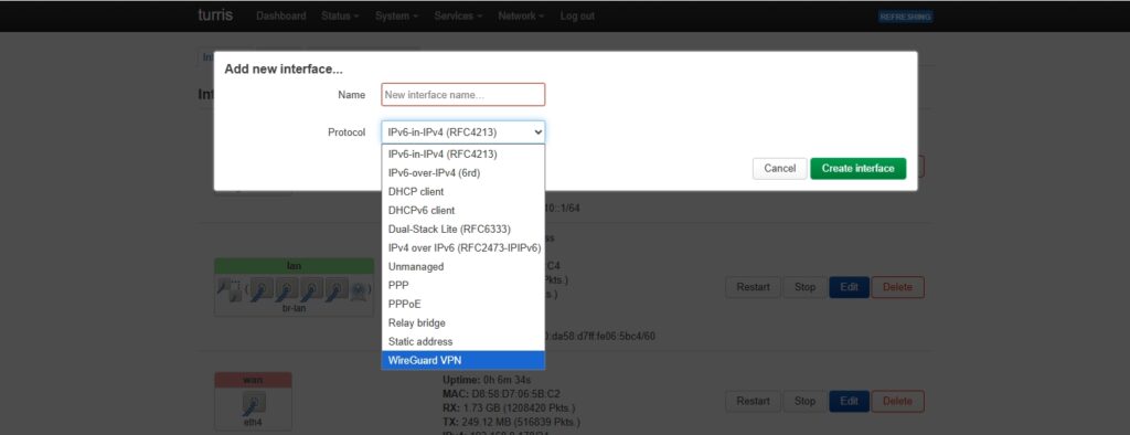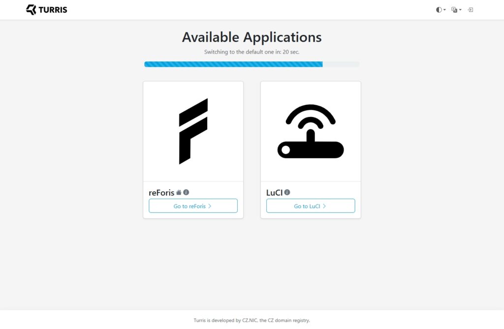 Na het doorlopen van de wizard kun je in de webinterface kiezen tussen de reForis-interface van Turris en de LuCI-interface van OpenWrt.
