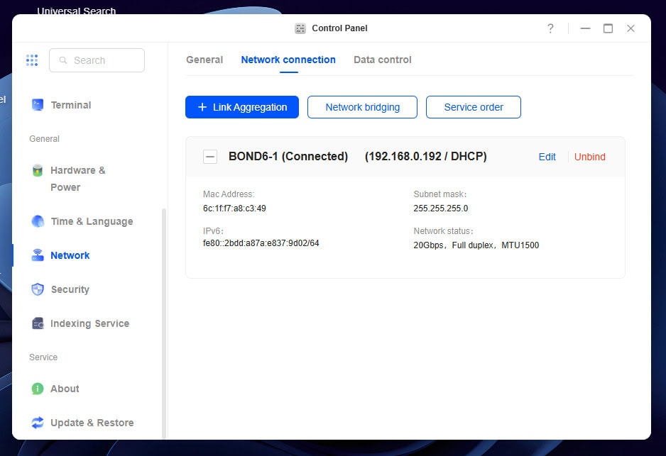 Dan moet je wel eerst SMB inschakelen in het Control Panel. Dat kan met SMB1 (niet aangeraden) of SMB 2, 2.1 en 3. Je kunt ook met WebDAV een netwerkkoppeling maken, terwijl de iDX6011 Pro ook via FTP, NFS en rsync te bereiken is. Als we het dan toch over de bereikbaarheid van deze NAS hebben: ook Telnet en SSH zijn aanwezig voor een externe terminal om het systeem op afstand te beheren. Onder de motorkap blijkt een Debian 12-Linux-distributie met kernel 6.12.30 te zitten.