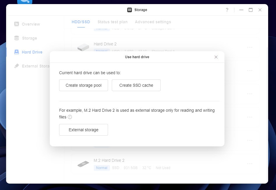 Na het installeren van het besturingssysteem kunnen de schijven met de Storage-app worden geïnitialiseerd. Maak eerst een opslagpool aan en creëer daarop een volume. Je kunt naast JBOD en RAID 0, zonder enige dataprotectie, kiezen uit RAID 1, 5, 6 en 10.