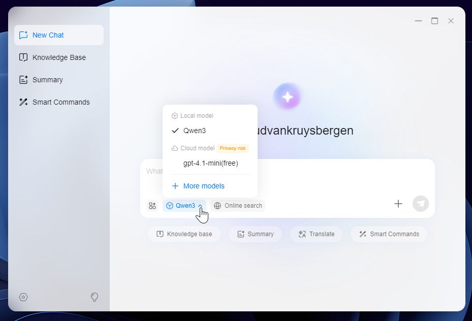 Met Smart Commands maak je bijvoorbeeld Docker-containers aan zonder de Docker-app te hoeven openen. Voeg de bestanden of afbeeldingen waarmee je wilt werken toe aan een of meerdere Knowledge Bases, en laat de AI daarop los. Of laat de AI zelf een fotoalbum samenstellen op basis van bepaalde gezichten of objecten. Zoek naar bepaalde documenten of foto’s met een gewone vraag. Of laat een audio-opname transcriberen en samenvatten. Laat bestanden bij het uploaden automatisch sorteren in mappen. Bij al die mogelijkheden geldt wel de beperking van het aantal ondersteunde talen.