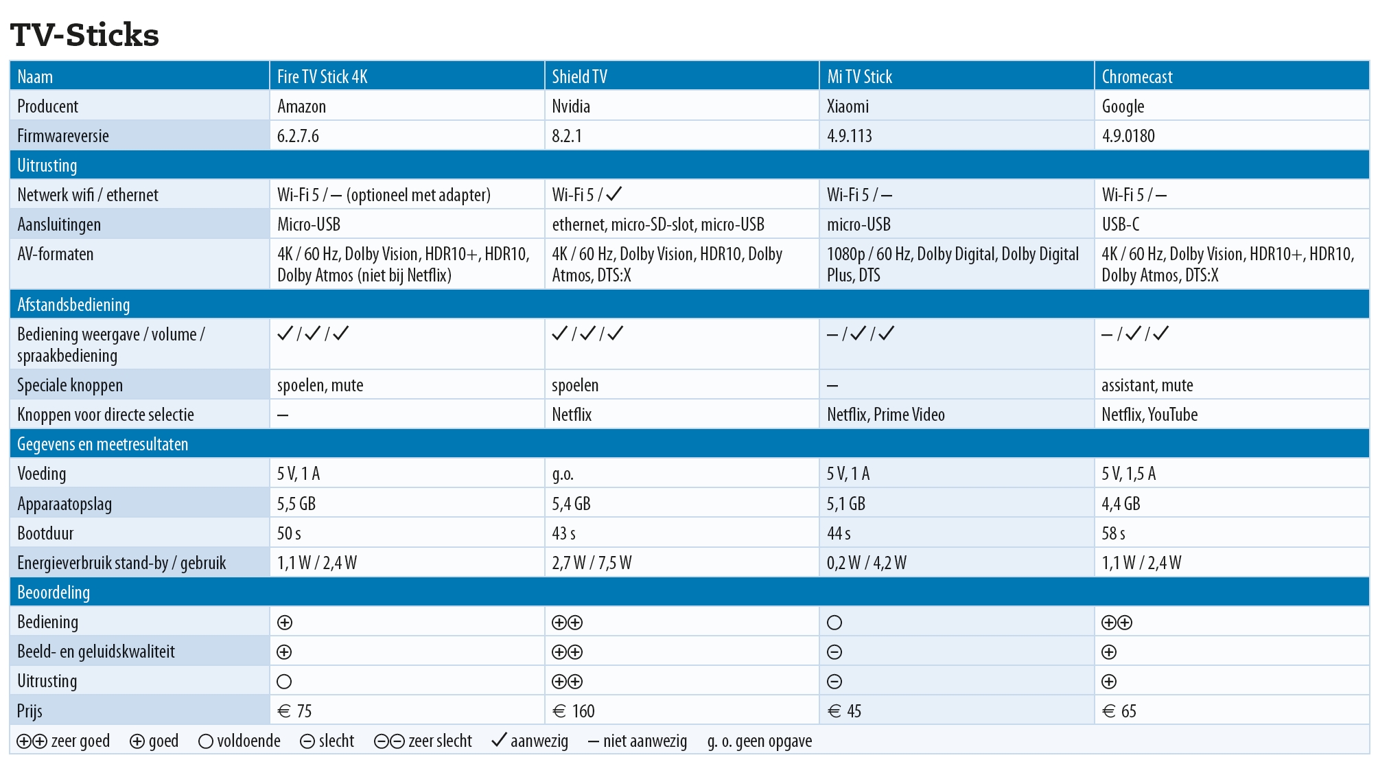 We hebben vier streaming media-sticks onder de loep genomen en gekeken of ze je smart-tv inderdaad van een turbo-injectie voorzien. De fabrikanten adverteren inmiddels alles als ‘stick’ wat je in een HDMI-poort kunt steken, hoewel lang niet alle apparaten ook altijd in stickvorm zijn. Bij het selecteren van de apparaten hebben we ons bewust beperkt tot die apparaten waar standaard een HDMI-aansluiting op zit en de beduidend duurdere settop-boxen buiten beschouwing gelaten.
