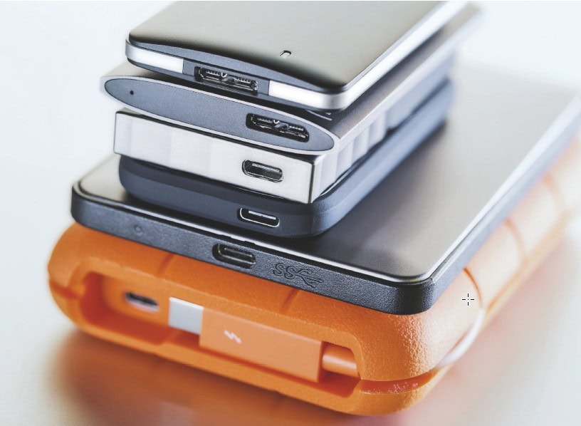 Voor een groot aantal bestanden heb je een groot opslagmedium nodig. Er zijn wel usb-sticks met een capaciteit van een of twee terabyte, maar die zijn meestal redelijk traag: sneller dan 200 MB/s zit er meestal niet in. Met een externe ssd kan dat tot twee keer zo snel als je die op een USB 3.1-poort aansluit.