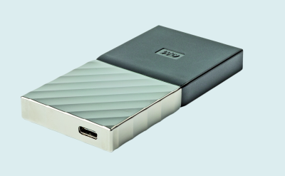De derde externe ssd van Western Digital heeft een behuizing die uit verschillende materialen bestaat, waardoor hij er elegant uitziet. De WD My Passport SSD behoort tot de goedkopere modellen in deze test.