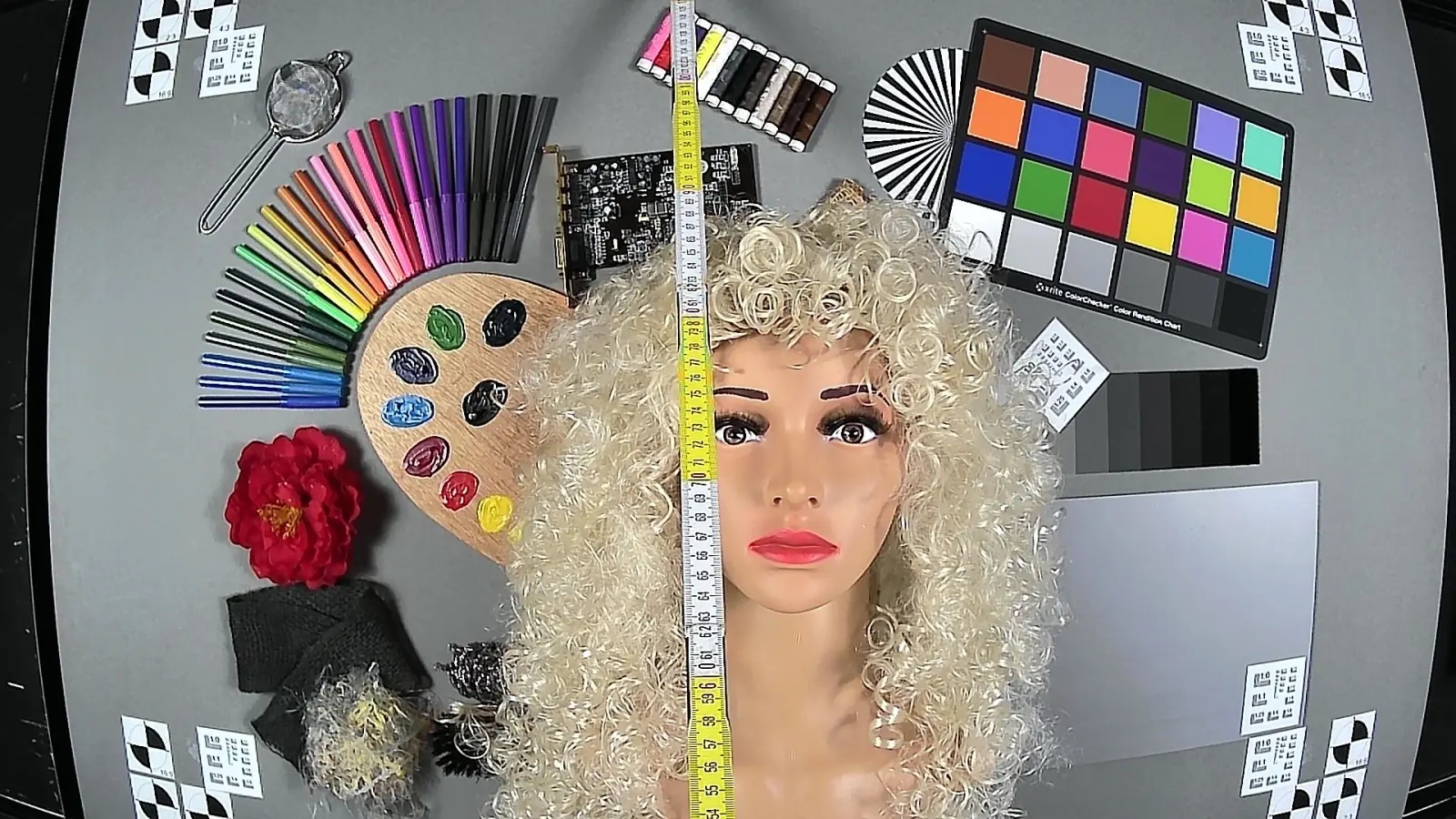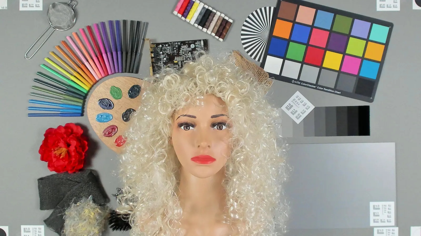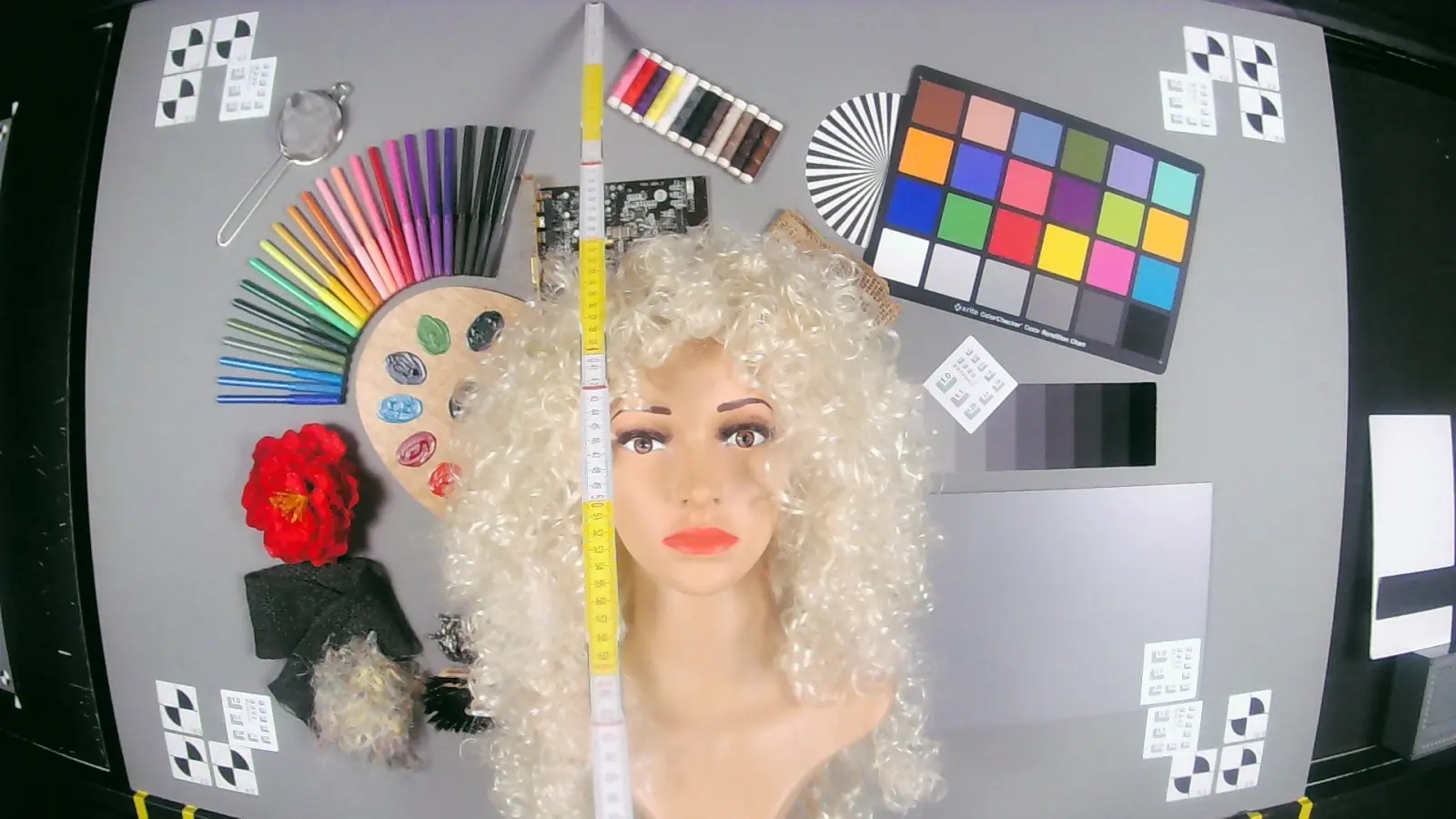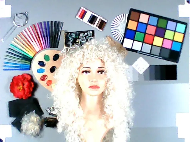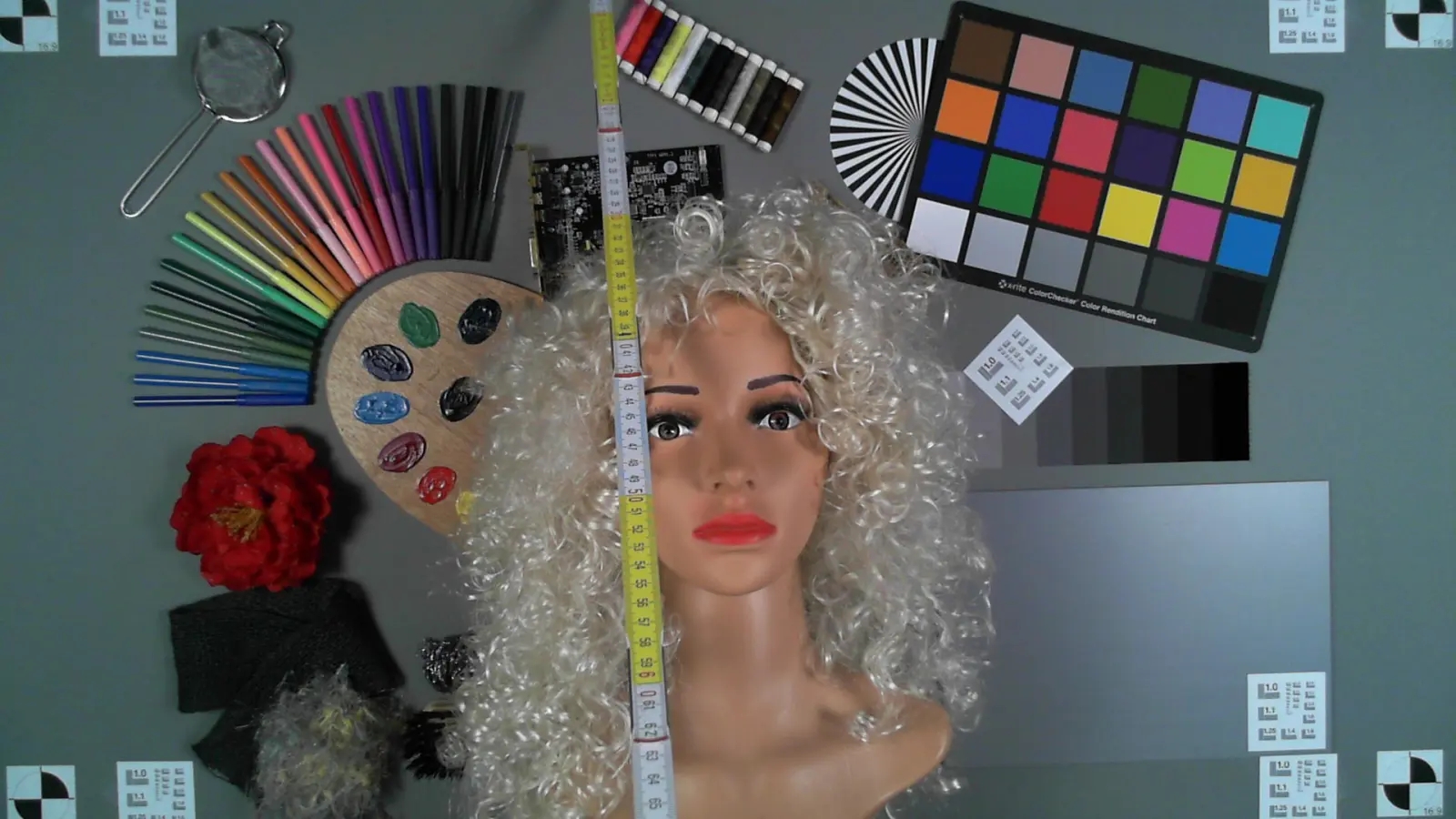 De eerste serie foto’s toont de opnames van de negen webcams die we hebben getest bij een omgevingshelderheid van 100 lux. We hebben de afstand tussen de achtergrond en de webcam zo gekozen dat de camera onze testkaart in 16:9-formaat volledig in beeld vat.