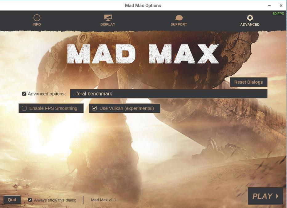 en start vervolgens het spel. Verschijnt dan de Feral-launcher, dan kun je het automatisch opstarten ervan uitzetten door het vinkje voor ‘Always show this dialog’ te verwijderen en de launcher weer te sluiten. Het spel moet dan zonder problemen starten. Om deze instelling weer ongedaan te maken, druk je bij het starten van het spel op de Ctrl-toets. Dan start de Feral-launcher en kun je met het activeren van de optie ‘Always show this dialog’ de autostart weer herstellen.