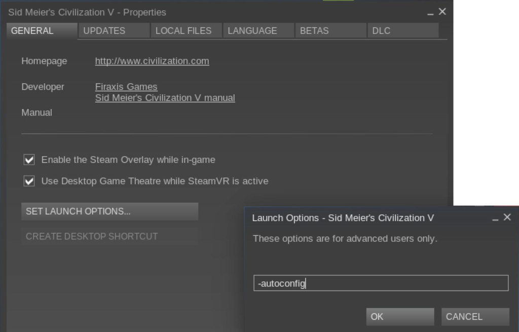 Als het spel de nieuwe grafische interface Vulkan al ondersteunt, dan kun je dat hier activeren – als je de juiste driver hebt tenminste. Als het spel niet wil starten omdat de launcher niet wil starten, dan kunnen extra startopties in de Steam-bibliotheek helpen. Voeg hier de volgende parameter toe