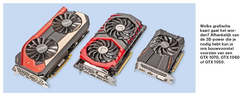 Let bij het bestellen van de onderdelen op de productnamen van de onderdelen zoals vermeld in de tabel. Bij grafische kaarten kom je vaak versies tegen met dezelfde gpu, maar een andere koeler of ventilator. Dan kan er flink wat verschil in geluidsniveau zitten.