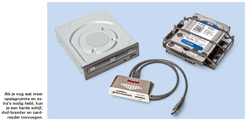 Bij een ssd of harde schijf heb je behoorlijk wat keus. Het is ook prima om een andere ATX-behuizing te gebruiken. Maar de meeste kastventilatoren die daarbij worden meegeleverd zijn verre van stil. Hierdoor zul je ze waarschijnlijk toch weer gaan vervangen voor wat stillere versies.